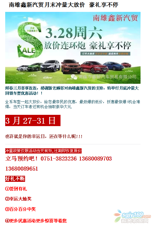 南雄鑫新汽貿(mào)月末沖量大放價 豪禮享不停